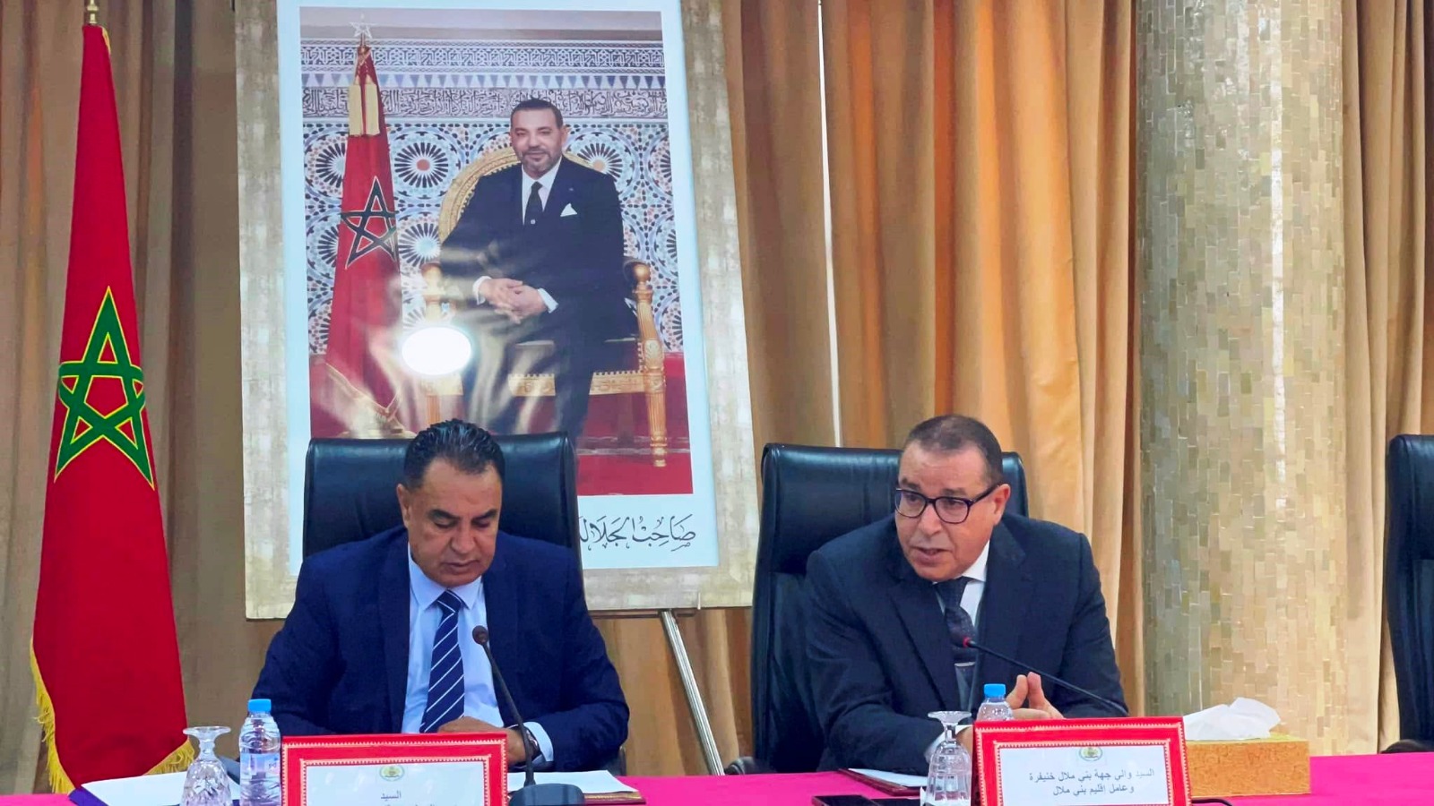 Mohamed Ouhnine, Président du Conseil provincial de Béni Mellal, a présidé, aux côtés de M Mohamed Benribag, Wali de la région de Béni Mellal-Khénifra et Gouverneur de la province de Béni Mellal, la session ordinaire du mois de janvier 2025, qui s’est tenue, lundi 13 janvier 2025. L’ordre du jour de cette session était consacré à l’examen et à la discussion des points suivants : présentation sur les ressources en eau à la province de Beni Mellal , étude et discussion du projet de convention de partenariat pour l’octroi d’un soutien financier aux clubs sportifs de la province de Beni Mellal , étude et discussion du projet de convention de partenariat pour l’octroi d’un soutien financier aux établissements de bien –être social de la province de Beni Mellal, étude et discussion du projet de convention de partenariat entre le Conseil de la province de Beni Mellal et l’Association des œuvres sociales des employés de l’administration du Conseil provincial de Beni Mellal.