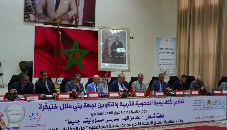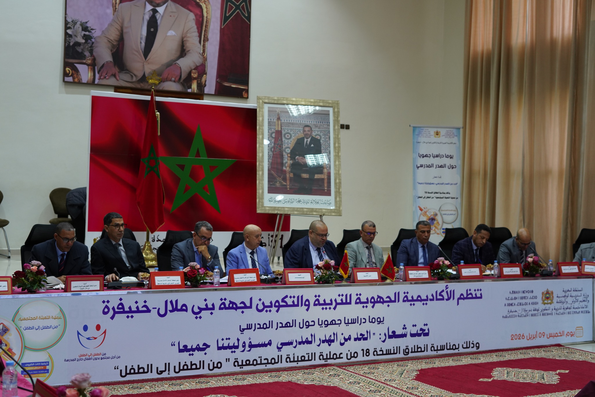 Dans le cadre de la mise en œuvre des dispositions de la loi-cadre n° 51.17, notamment son article 19 qui consacre l’obligation de scolarisation de tous les enfants âgés de quatre à seize ans, et dans la continuité du déploiement de l’objectif stratégique de la feuille de route 2022-2026 relatif à la réduction du décrochage scolaire, ainsi qu’en application de la Déclaration de Marrakech 2020 portant sur la généralisation de l’enseignement obligatoire et la lutte contre l’abandon scolaire, et conformément aux dispositions du protocole d’exécution de la convention-cadre de partenariat et de coopération conclue entre le Ministère de l’Éducation nationale, de la Formation professionnelle, de l’Enseignement supérieur et de la Recherche scientifique et la Présidence du Ministère public au niveau de l’Académie régionale d’éducation et de formation de Béni Mellal-Khénifra et du Parquet général près la Cour d’appel de Béni Mellal en date du 12 octobre 2021, ainsi qu’en exécution de la correspondance ministérielle n° 26/1234 du 2 mars 2026 relative à l’organisation de l’opération de mobilisation communautaire « De l’enfant à l’enfant » pour le repérage des enfants et adolescents hors du système scolaire au titre de l’année 2026, l’Académie régionale d’éducation et de formation de la région Béni Mellal-Khénifra a organisé, une journée d’étude consacrée au décrochage scolaire. À l’issue de ces travaux, un ensemble de conclusions et de recommandations a été formulé. Leur mise en œuvre effective est de nature à constituer un levier pertinent pour réduire le phénomène du décrochage scolaire, désormais identifié comme un défi majeur auquel est confrontée la société marocaine