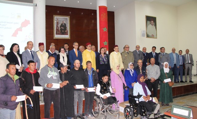A l’issue de cette rencontre, des masques de protection contre les rayons ultraviolets ont été distribués au profit de quatre enfants de la lune, ainsi que 10 chèques bancaires d’une enveloppe de 438 milles dirhams remis à des personnes en situation d’handicap dans le cadre de l’encouragement à l’insertion professionnelle et aux activités génératrices de revenus des personnes handicapées, en plus de la remise d’un fauteuil roulant électrique à une élève en situation d’handicap, et la remise d’un bus à la Coordination Régionale de l’entraide Nationale afin d’être utilisé au Centre de Services Sociaux Mobiles pour transporter les personnes sans abri.